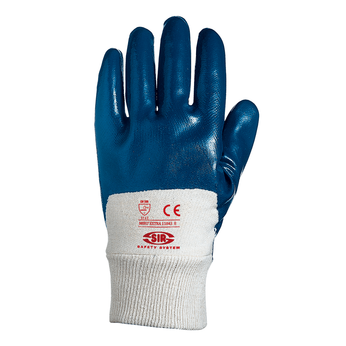 Kötött, nehéz pamutból készült kesztyű, szakítás- és olajálló NBR borítással; rugalmas csuklórésszel.