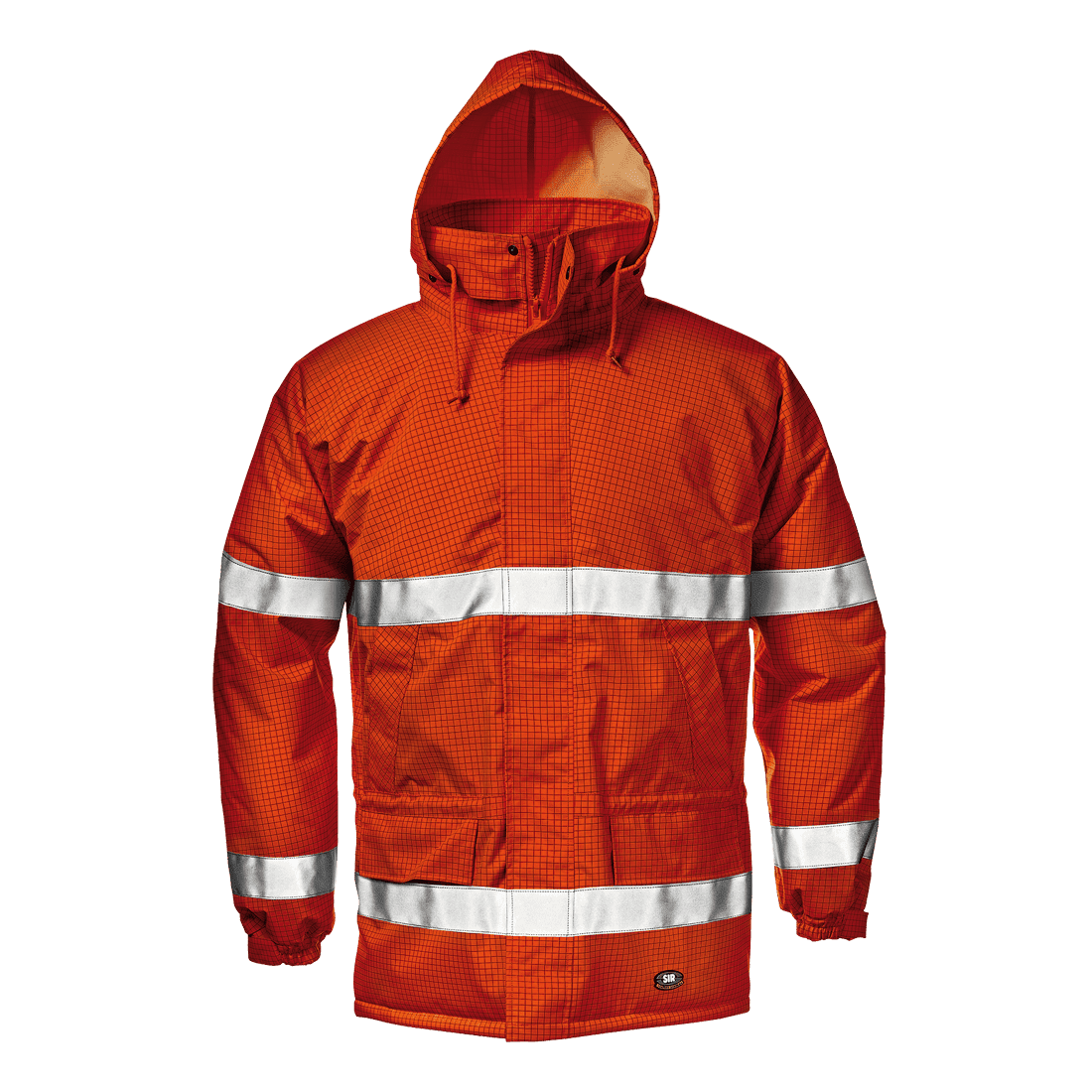 Lélegző és vízálló, bélelt kabát (180/200 g/m²), antisztatikus, lángálló és kémiai hatásoknak ellenálló tulajdonságokkal. A külső anyag összetétele: 99% poliészter, 1 % antisztatikus szál. Bélés anyaga: 100% pamut.