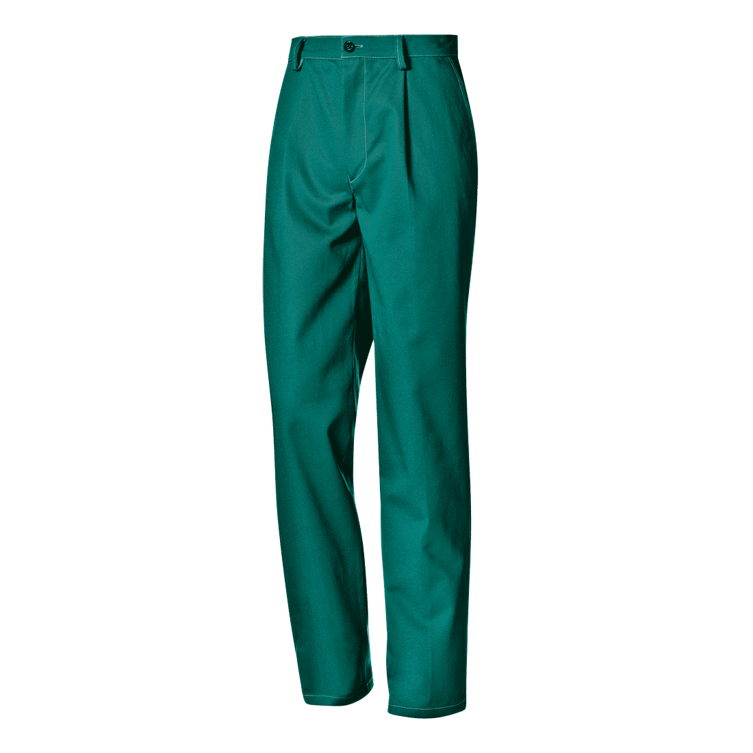 100% lángálló pamutból készült, derekas nadrág. Fém cipzárral és patent gombolással, két ferde zsebbel és egy fedett, patentos farzsebbel.