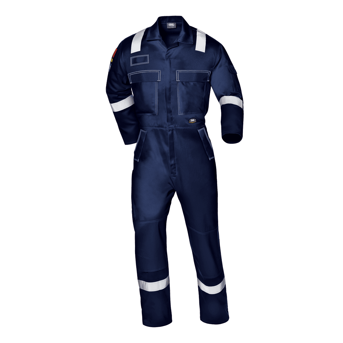 Galléros overál. Külső anyag 87% pamut, 12% nejlon, és 1% szénszál, 255 g/m². Rejtett, kétutas cipzár, tépőzáras fedővel. Külön fül kialakítva a gázérzékelő viseléséhez. A bal ujjon tépőzáras, fedett zseb. Csípőnél két ferde, fedett zseb. Két tépőzáras, fedett farzseb, rugalmas derékrész. Térdvédő számára kialakított tépőzáras zsebek; külön fedett, tépőzáras, zseb mérőszalagnak. Fényvisszaverő csíkok a vállon, lábszáron és karokon.